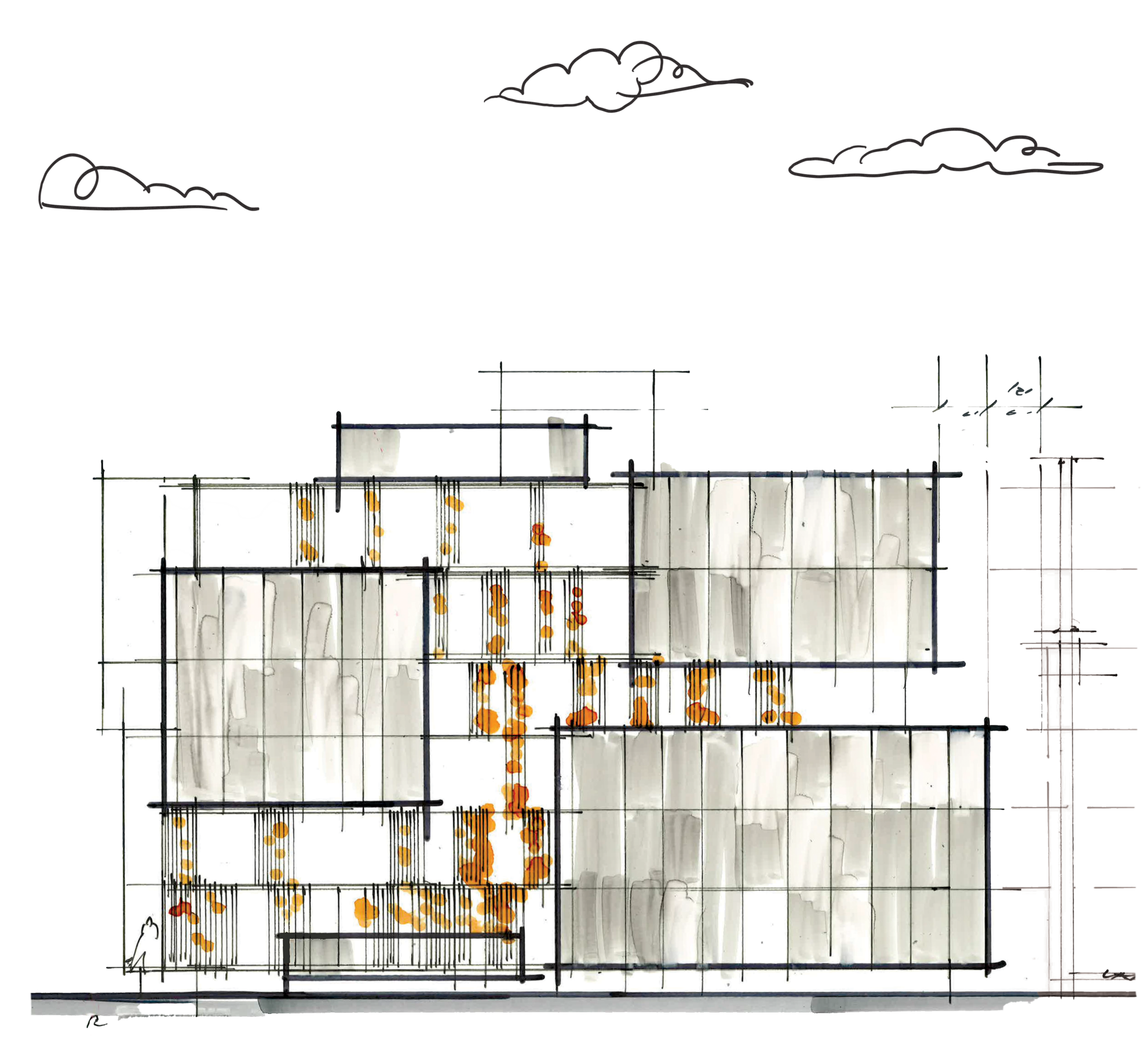 Inspired by flowing forms found in nature, Vesa’s facade is both modern and timeless. Its curved aluminum panels offer shade, while rounded balconies with glass railings make the most of the views. Built to LEED Gold standards, the design reflects our strong commitment to sustainability.